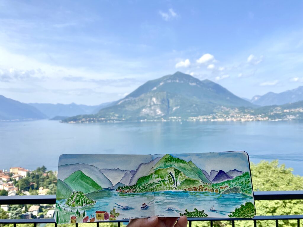 Drawing and painting are her meditation, and she loves to paint tiny plein air scenes on her travels, and then work from photographs in her studio to remember the calmness of her getaways.